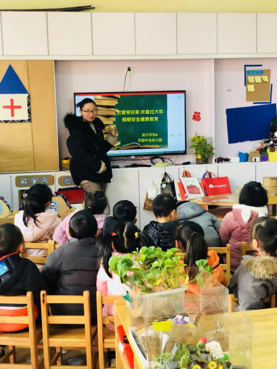 为让辖区儿童度过一个安全、文明、祥和、温暖的假期,2021年1月25日上午,赵公社区联合花园半岛幼儿园开展“把爱带回家.欢喜过大年”安全自护教育讲座。