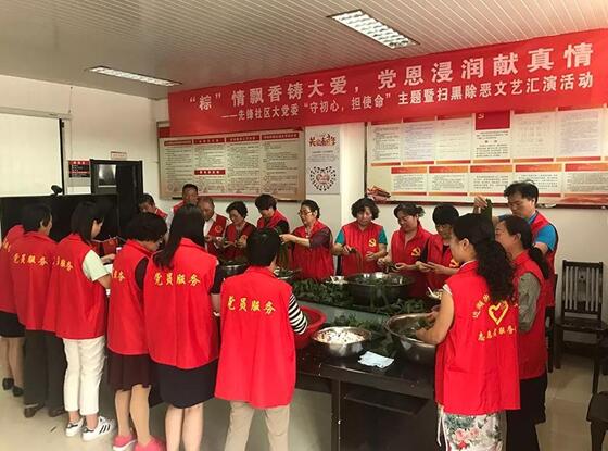 在这场“‘粽’情飘香铸大爱,党恩润泽献真情”的主题活动中,来自大党委的70多名“520志愿者”为老人们开展系列服务。端午节送粽子是必不可少的内容。前一天社区的老党员就备好了100斤糯米、棕叶和馅料,大家齐动手,不到3个小时,裹着红豆、蜜枣的甜心粽子装满了三大筐。