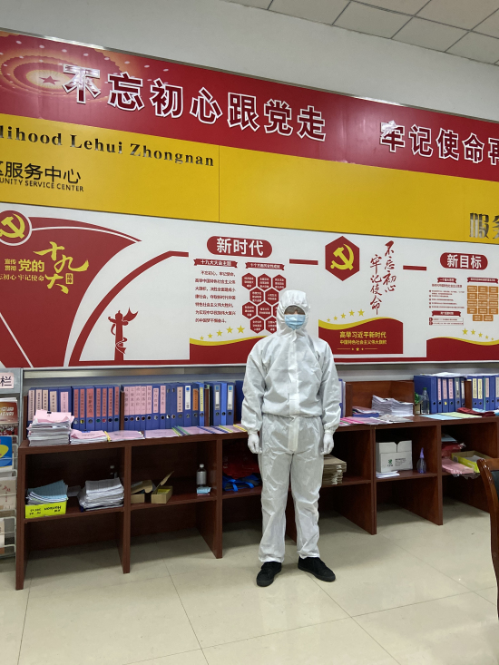中南社区党委委员,社居委副主任周鑫,一名年轻的共产党员。在他的身上,总是透着那股子憨实与坚毅,总是在不声不响不张不扬间把事情默默做了。有好几次,白天在门岗带班执勤的他回过头夜晚又在社区大厅值守热线、登记出入,一夜无休的他第二天中午又来到社区。问他累吗:他总是乐呵呵的说,累是累点,但我年轻,扛一扛就过去了。就在今天,要组织自愿做检测的居家隔离人员前往指定医院,又是他主动请战,穿上简单的防护服一一护送前往。
