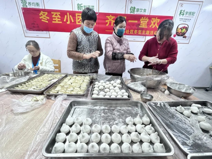 蠡桥社区开展“冬至小团圆,齐聚一家欢”包团子活动