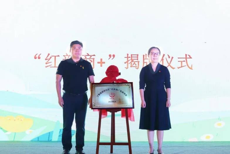 宜兴市商务局党组成员、市贸促会长金秀,丁蜀镇副镇长毛光云共同为“红新商+”揭牌。