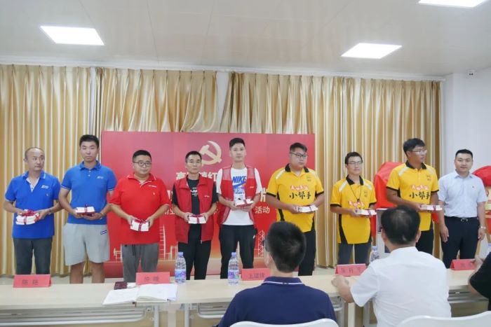 随后,举行“红骑士”便民服务项目启动仪式。活动现场,快递小哥党员代表与梧桐人家业主代表结对并赠送药品,为服务小区居民注入“新”力量。