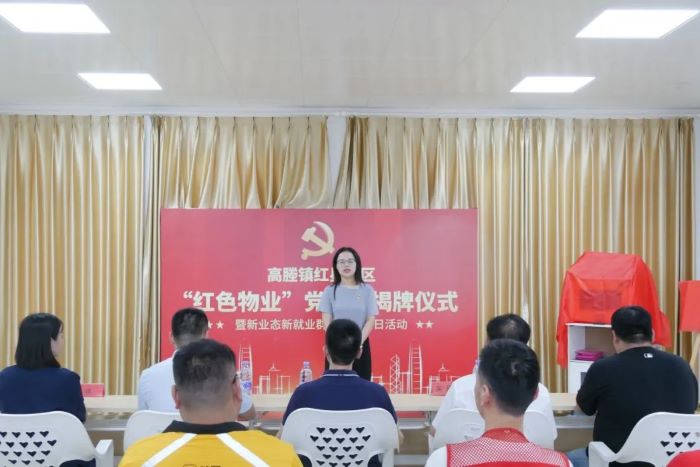 为深入学习贯彻党的二十大精神,以“红色物业”创新破解社区管理难题,推动新业态新就业群体融入基层党建格局,7月28日,环科园(高塍镇)开展红星社区梧桐人家小区“红色物业”功能型党支部揭牌仪式暨新业态新就业群体主题党日活动。镇党委副书记王建锋,镇党委组织委员仲映,镇妇联及社区、物管委相关负责人,新业态新就业群体党员代表等参加活动。