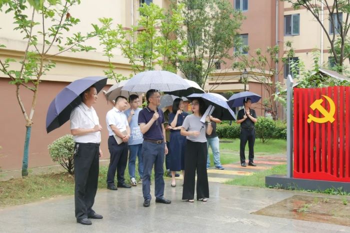 与会人员来到梧桐人家小区初心广场,实地参观“红色物业”创建工作。大家漫步在以百年党史为主题的红色步道上,详细了解“红色物业”阵地建设、硬件设施、队伍组建、运行机制以及在沟通民情民意、提升为民服务能力等方面的作用发挥情况。