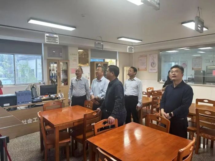 考察团首先参观了居家养老呼叫中心,详细了解居家养老援助服务工作的运营模式。中心负责人陈才龙介绍了中心居家养老援助服务工作的服务理念、服务标准内容、以及服务中遇到的困难与挑战。考察团对中心在提升养老服务质量、安全服务防范等方面所做的努力给予了高度评价。随后,张主席一行实地调研丁蜀镇画溪社区日间照料中心,参观了服务大厅、中央厨房、助餐室、书画室等功能室,站点工作人员介绍了宜居乐智慧养老平台的日常运作模式、就餐老人数量、配送模式以及餐食标准。考察团详细了解了日间照料中心配套设施建设、运营模式、以及助餐配送等情况,并对中心服务运营品质给予高度认可。