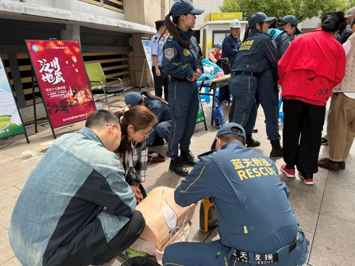 蓝天救援队的志愿者们则为居民带来了实用的急救技能培训。心肺复苏、海姆立克急救法、伤口包扎等专业技能,通过现场演示和手把手教学的方式,让居民们掌握了基本的急救知识和技能。培训过程中,居民们积极参与实操体验,志愿者耐心指导,确保每个人都能正确掌握这些救命技能。