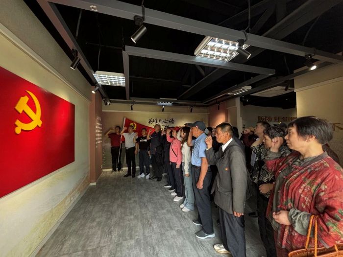 走进纪念馆,党员们认真聆听,仔细观看每一件展品,仿佛置身于那个战火纷飞的年代。在纪念馆内,全体党员整齐列队,面对鲜艳的党旗,庄严地举起右手,重温入党誓词。“我志愿加入中国共产党,拥护党的纲领,遵守党的章程……”铿锵有力的誓言在陈列馆前回荡,表达了党员们对党的无限忠诚和为共产主义事业奋斗终身的坚定决心。这一刻,每一位党员都仿佛回到了入党时的那一刻,心中充满了自豪与使命感。