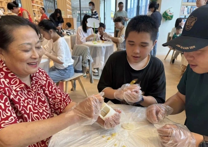 非遗文化是民族瑰宝,宜兴非物质文化遗产花木兰食品加工厂创始人黄文玲老师现场化身 “甜蜜导师”,为孩子们揭开传统绿豆糕制作技艺的奥秘。她从选材、泡豆、蒸制到研磨成泥的工序娓娓道来,特别提到 “非遗绿豆糕讲究‘低糖少油、入口即化’,就像传统文化一样,经得起时间推敲”。孩子们围坐在摆满绿豆粉的桌前,一边听着黄老师讲解,一边盯着模具里的 “小老虎”“小花” 图案,早已按捺不住跃跃欲试的小手。