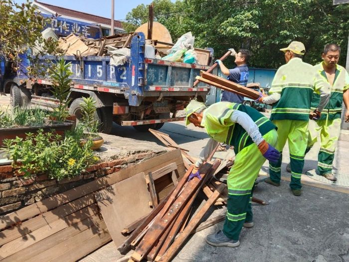 顶着炎炎烈日,环卫工人、社区保洁员和网格员对公共区域内乱堆乱放的杂物、大件垃圾等进行集中整治,做到“发现一处、清理一处”。部分垃圾堆积时间久,清理难度大,但大家不畏高温,埋头苦干,任凭衣服不断被汗水湿透,齐心协力将各类垃圾清理干净。清理过程中,工作人员还向居民宣传环保知识,呼吁大家养成良好的环保习惯。此次行动得到了居民们的广泛点赞和大力支持。