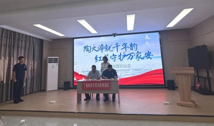 蜀山、蜀北社区党总支与丁蜀镇消防中队党支部举行“陶火淬就千年韵 红蓝守护万家安”签约仪式