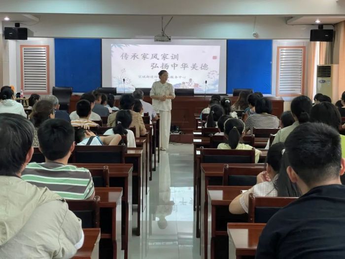 父母是孩子成长路上的重要引路人,家庭教育方式和家庭氛围对孩子的心理健康起着至关重要的作用。为了帮助家长树立正确的家庭教育观念,宝东社区于 7月24日下午开展了“传承家风家训,弘扬中华美德”为主题的家庭教育讲座。此次活动旨在促进家庭教育的健康发展,通过引导家长学习科学的家庭教育方法,营造和谐温馨的家庭氛围,为创建文明家庭培养优秀少年打下坚实基础。