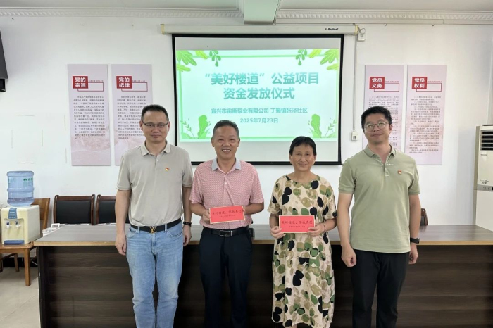 7月23日下午,丁蜀镇张泽社区联合宜兴市宙斯泵业有限公司开展“美好楼道”公益项目资金发放仪式。邀请了小区居民代表、信息员、社区党员等参与此次发放仪式。