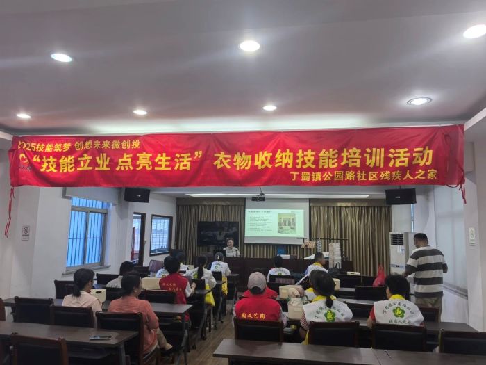 7月25日,一场别开生面的衣物收纳技能培训在公园路社区残疾人之家圆满举行。此次活动旨在提升残疾人的生活自理能力和职业技能,特别邀请了宜兴市宜居乐职业培训学校经验丰富的周老师进行授课,吸引了众多残疾人朋友及其家属的热情参与。