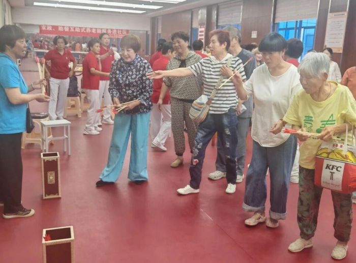 在趣味游园会区域,投壶、猜灯谜等传统中秋游戏吸引了众多居民参与。大家或凝神投掷,或低头沉思,或相互讨论,现场欢声笑语不绝于耳。这些充满古韵的游戏让长辈们重温了旧时佳节的热闹与温情,有效增进了邻里之间的互动与情感联结,将节日的氛围推向了高潮。
