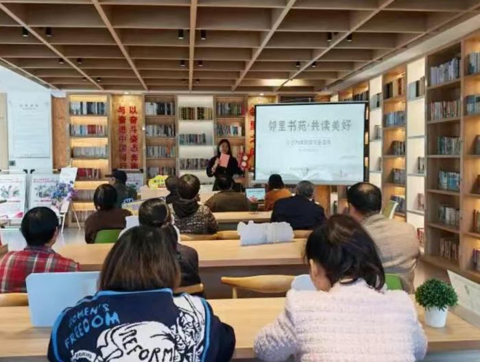 阅读分享浸润邻里温情。结合自身阅读经历,两位阅读分享者分享了近期推荐的阅读书籍。他们或深情朗诵精彩片段,或娓娓道来书中故事,或结合工作生活实际,畅谈心得体会与思想启迪。