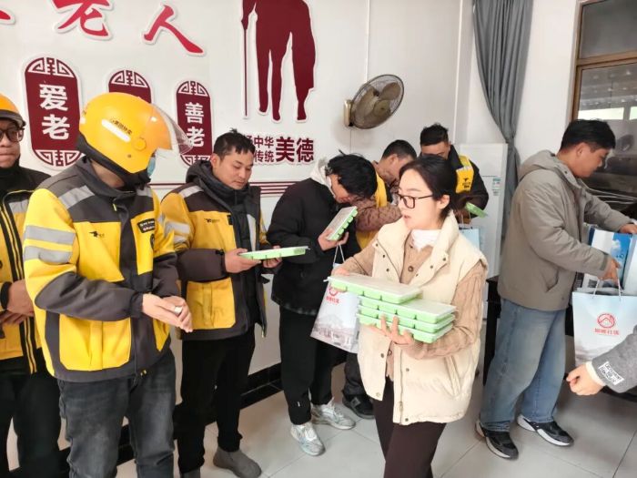 冬至将至,关怀先行。为关心关爱新业态群体,营造和谐温暖的节日氛围,今天上午,高塍社区组织开展“凝‘新’聚力 冬至暖‘新’”高塍社区冬至主题活动,为坚守在寒冬一线的外卖骑手们送上冬日里的暖心慰问。