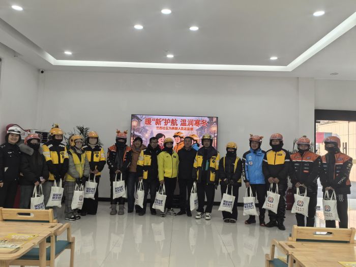 紧接着,一份份精心准备的“暖冬礼包”——手套、口罩、护膝,被递到两新人员手中。每一句“辛苦了,注意安全”,都化作具体的温度,熨帖着奔波的艰辛。