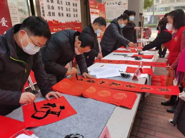 迎新送福写春联,翰墨飘香添年味。为弘扬中华优秀传统文化,营造欢乐、喜庆、祥和的春节氛围,2023年1月9日上午,谈家干社区、宜兴市书法家协会、宜兴市湖滨实验学校、雨文堂书法教习社联合举办“阅读送关爱,书香暖寒冬”“环球体育的中国梦,文化进万家”迎新春送春联活动,用心挑选的吉祥话游溢于墨香红纸间祈盼新的一年大展宏“兔”,寄托对美好生活的憧憬,为居民送去美好祝愿。