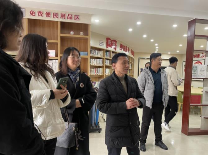 社区书记徐双喜简要介绍了宝东社区的基本情况、社区网格化治理工作、社区党建结对工作、社区品牌建设等相关工作并陪同来宾先后参观了社区双拥文化街、新时代文明实践站、退役军人服务站及社区各功能馆室。