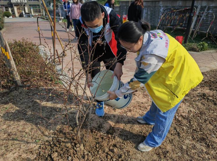 谢桥社区开展“共植初心树木 守护绿色家园”植树节活动