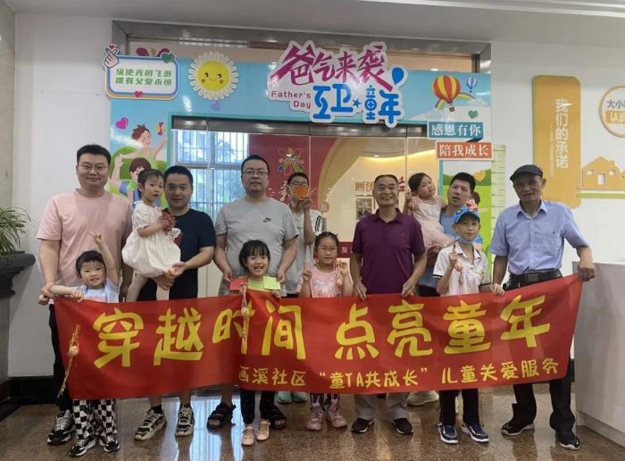 父爱在儿童关爱中发挥了重要作用,父爱有利于孩子社会性的发展,有助于孩子智力的发展,有助于孩子形成良好的性别意识。现如今父亲为家庭生活奔波,同时受传统文化和社会发展等因素的影响,父亲在家庭教育中的参与程度不容乐观,儿童在很大程度上与父亲形成隔阂。画溪社区在父亲节开展了“穿越时间 点亮童年--“童TA共成长”儿童关爱服务,希望通过此次活动,帮助父亲创造与孩子间的交流平台、交往平台,共同参加亲子游戏活动,以活动形式增进孩子与父亲之间的亲子关系,从而促使每一个孩子都能健康、快乐、幸福地成长。