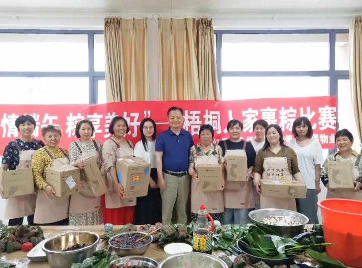 活动当天,梧桐人家物业服务中心气氛热烈,工作人员提前将准备好的粽叶和糯米、肉馅等材料摆放在桌上,并细心讲解包粽子的流程和比赛规则。填馅、压实、封口、扎捆,来自社区的10多名包粽子高手劲头十足,拿出“看家本领”,糯米和粽叶在手中翻转飞舞,她们手法娴熟,行云流水般地完成着包粽子的各项步骤,转眼间一个个棱角分明的鲜绿色粽子展现在眼前。通过激励的角逐,10分钟裹了14个粽子的吕阿姨获得本次裹粽子比赛的第一名。在欢声笑语中,社区党支部书记吴丹平为获奖选手颁奖,大家一起拍照记录这美好的瞬间。为了让社区老人感受到节日的温馨、快乐,红星社区居家养老服务中心组织老人们一起动手包馄饨做香囊。馄饨寓意团圆、美满、幸福,一只只小小的馄饨,凝聚着志愿者们一份份浓浓的爱。