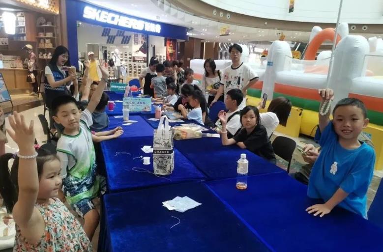 活动的第二个环节就是二手书义卖啦!由亲子家庭齐齐上阵,通过父母和孩子们的团结合作,将手中的书籍向商场中的顾客们进行义卖。在义卖过程中,小朋友充分锻炼了自身的交流能力,同时也促进了亲子之间的沟通。
