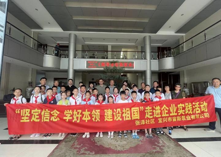 7月18日暑托班第二天,张泽社区联合宜兴宙斯泵业有限公司开展“坚定信念 学好本领 建设祖国”走进企业实践活动。