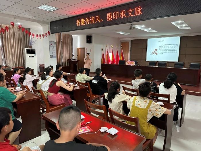 为进一步加强社区文化建设,丰富社区文化生活,培养孩子对非遗文化的兴趣和认知,让孩子们体验手工香囊制作和拓印的乐趣。7月25日下午,宜兴市博物馆协同宜兴市慈善会来到南河社区开展“相伴童行 团助成长”儿童关爱之家活动,为辖区内的青少年们提供上门文化服务,在寓教于乐中传承传统文化。