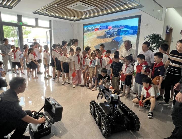 特警是警察中的特种精英,专门负责各种特别的危险任务,例如:拯救人质、围攻恐怖分子或有强大火力武器的匪徒等等。托班青少年、村社区党员以及退休教师们在张泽社区集合出发到特警中心。首先,由特警叔叔带领小朋友了解电击手套、防撞无人机、液压破拆组合、水下搜救机器人等装备,在大家的惊叹声中学员与机器人互动,体验科技的魅力。