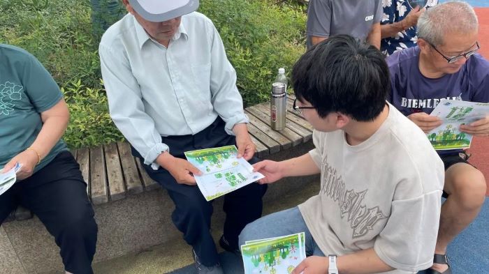 “绿茵使者”小分队成员从保护树木的原因、树木减少的原因以及保护树木的具体措施三个方面向社区居民展开讲解,并与居民进行互动交流,解答居民环保问题,提高居民的环保意识。大家共同探讨如何更好地保护树木,为社区环境贡献力量。通过互动交流,居民们更加了解环保的重要性。