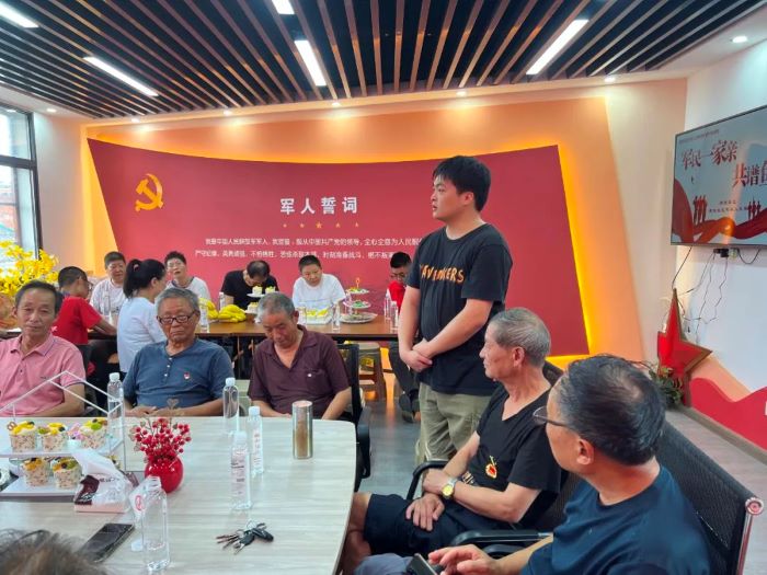座谈会上社区蒋书记向全体退役军人致以节日的问候和崇高的敬意,感谢他们为国家安宁、祖国的富强美丽做出贡献,为社区的建设贡献着自己的一份力量。随后,退役军人代表也分享了自己在部队锻炼的经历、现在的工作生活和创业事迹,大家畅所欲言,回忆起部队的点点滴滴,难忘军人情怀,感恩党的恩情。
