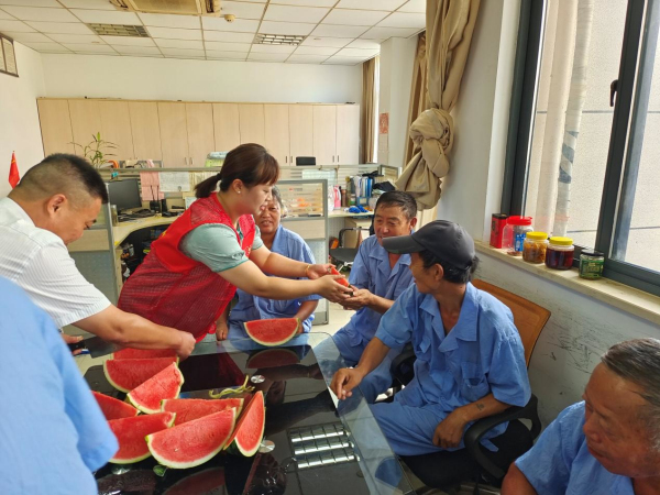 一个西瓜传递的不仅仅是清凉,更是拉近了社区与辖区居民们的距离;一句句贴心的话语,一声声关切的问候,为老人送去的不仅是物质上的祝福,更是精神上的慰藉,关爱老人、关爱一线劳动者,也是社区应尽的责任和义务。