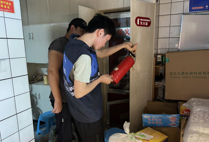 8月10日,城东社区网格员对各场所消防设施是否齐全、状况是否良好,安全出口、消防通道是否通畅,用火用电是否规范,应急照明是否完整,消防制度是否落实到位等情况进行了全面检查,排查各类安全隐患,从源头上避免安全事故的发生。同时,在店铺张贴“无锡市九小场所消防安全标识牌”,落实消防安全员及日常指导员。
