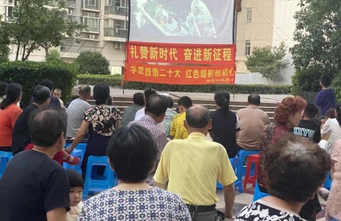 为深入贯彻落实党的二十大精神,传承红色基因、赓续红色血脉,激发广大党员干部和群众的爱党爱国情怀,8月17日晚,宜北社区党委组织辖区党员、居民在新天地花园广场开展“学思践悟二十大、红色观影映初心”观影活动。社区工作人员、辖区党员、辖区居民共100余人观看《战狼2》这部红色电影。