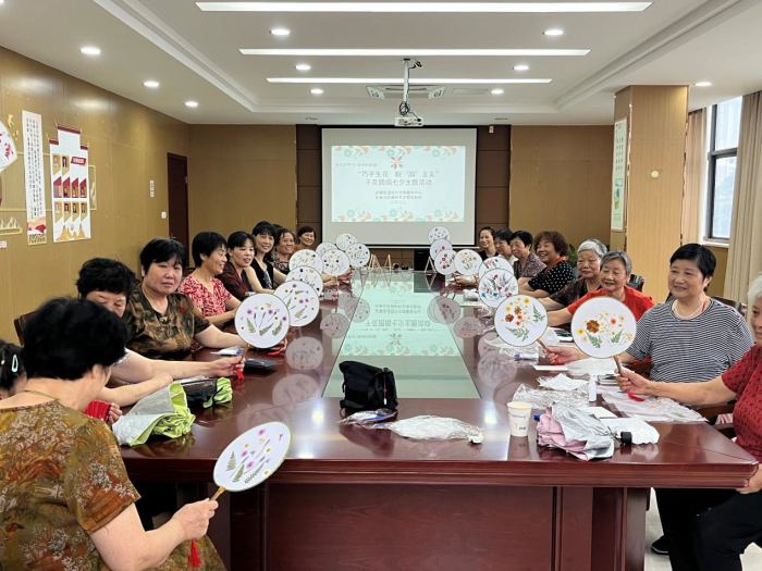 活动中,社区志愿者老师向居民介绍了七夕节的来源、传说、习俗以及传统节日的文化内涵。关于七夕节日文化习俗介绍完,老师用图片展示各种各样的干花团扇成品,并向大家介绍团扇的制作技巧,鼓励大家充分发挥想象力,创造属于自己的作品。大家以古朴团扇为底托,用干花装饰花样扇面,将花材料平铺在扇面上,摆出自己喜欢的造型,再用胶水将所有花材固定在扇面上,经过一番创意设计,素白的扇面渐渐被“扮靓”,美不胜收的团扇呈现在众人的眼前,一把团扇摇起的不仅仅是婀娜多姿的惬意清凉,更是一脉相承的文化底蕴。通过这次活动,长新社区为辖区居民献上美好的七夕节祝福,不仅使社区居民感受到传统文化的内涵,让中华传统文化深入人心,更积极倡导优良的家风家训,为营造家庭和睦、邻里和谐的社区氛围奠定基础。