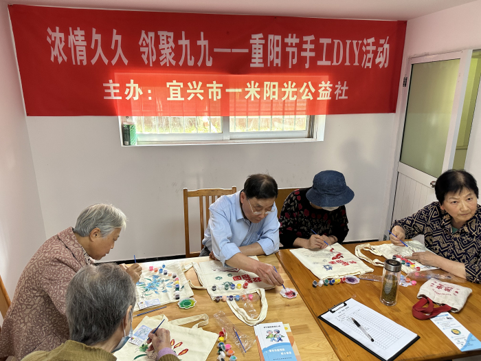 为弘扬中华民族尊老敬老的传统美德,营造敬老、爱老、助老的社区风尚,在老年节来临之际,社区联合社会组织“一米阳光”公益社,在华兴安居小区组织中高龄空巢老人开展“浓情久久 邻聚九九”手工DIY活动,给他们送上节日的祝福和情感的慰藉。