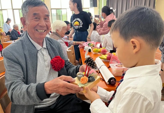 小朋友们还为爷爷奶奶准备了手工作品,为他们送上健康祝福,还给爷爷奶奶送上一个个亲手剥的橘子、重阳糕,给爷爷奶奶捶背、揉揉腿。爷爷奶奶们脸上都洋溢着欣慰的笑容,大家其乐融融沉浸在一片温馨的氛围中。