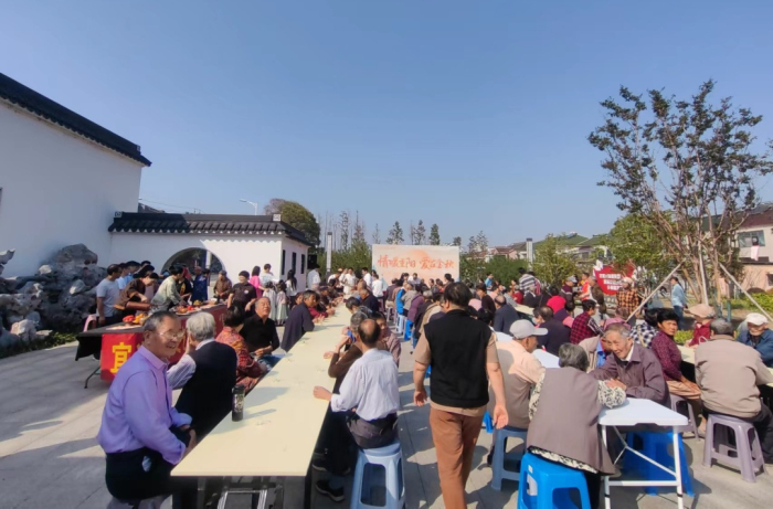 同时,来自宜兴市新文艺群体联合会“星火”志愿服务团的志愿者们还端上了美味的重阳糕,为老人送上温暖的关怀。