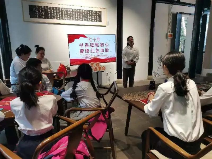 为营造书香氛围,弘扬传统文化,赓续红色血脉,10月24日下午,丁蜀镇湖渎社区联合“智圆行方”妇女微家、希望美术教育丁山分校在东坡书院共同举办“书香砥砺初心 赓续红色血脉”“红十月”阅读活动。