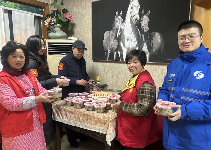 当天一大早,社区网格员、居民代表、党员志愿者们就开始忙碌起来了。俗话说,“腊七腊八,冻掉下巴”。天气虽冷,居民志愿者们的热情却丝毫不减。在欢歌笑语中,一碗碗精心熬制而成的腊八粥,粥香四溢、扑鼻而来。
