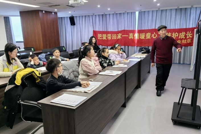 此次活动,社区特邀中国书法家协会会员、宜兴老干部大学书法老师王法骏来到社区,为孩子们带来一场硬笔书法友谊赛。