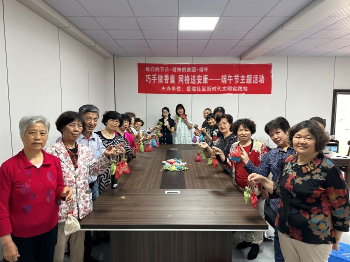 岳堤社区开展“巧手做香囊 网格送安康”端午节主题活动