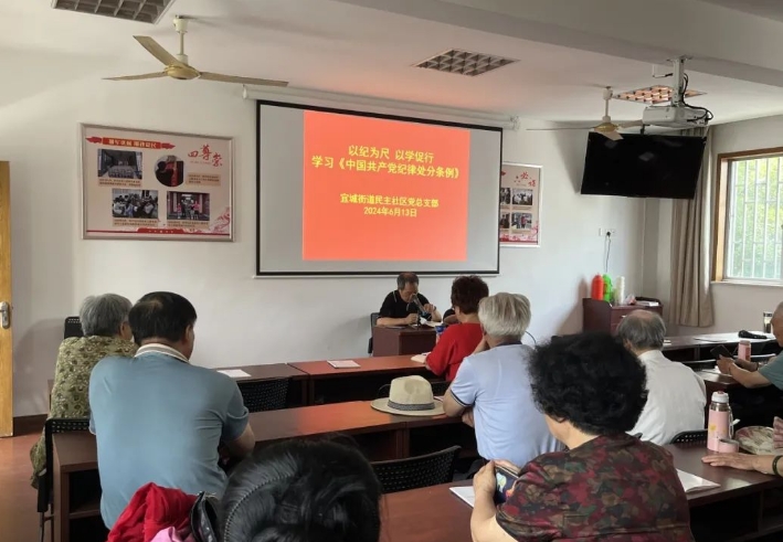 离退休干部党支部党员朱迅对新修订的《中国共产党纪律处分条例》进行了全面解读,强调了学习《条例》的重要性,从《条例》修订的重要意义、《条例》修订的亮点解读、以严明的纪律推进党的自我革命等方面进行系统解读,引导全体党员和工作人员做到明界限、知边界、守底线、不逾矩,使铁的纪律真正转化为党员和社区工作人员的日常习惯和自觉遵循。