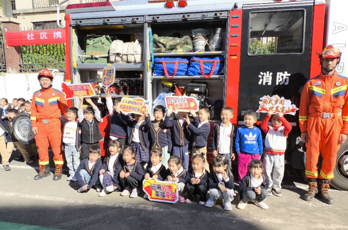 恰逢第33个全国消防日,为了让广大师生能将从书本上学习的消防知识得到更加深入的了解,进而提升师幼的消防安全意识和自防自护能力,全力筑牢校园消防安全“防火墙”,宝山社区、丁蜀镇消委办、丁蜀专职消防救援中队联合走进宜兴市英仁幼儿园,与幼儿园携手组织开展“社区携手筑防线 安全相伴护校园”消防安全教育活动。