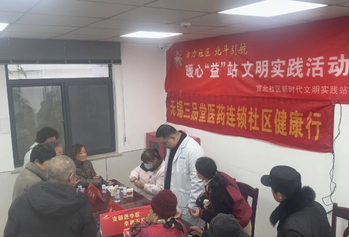 宜北社区携手三品堂医药、苏亦格理发、宜北社区卫生服务站、王俊推拿、优倍视眼视光中心、小区党员志愿者联合开展量血压、测血糖、医疗保健知识咨询、视力筛查等各类健康义诊,以及推拿、理发、磨刀等接地气的便民活动,现场居民群众络绎不绝,医护人员和党员志愿者们不停不歇,细心、耐心、真心地为群众提供志愿服务。