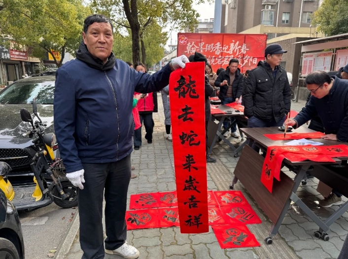 过了腊八就是年,过年自然少不了贴福字、春联,汉风堂艺术沙龙的书法大家现场为社区居民书写春联和福字,书法师们笔法苍劲有力,运笔行云流水,居民们拿到心仪的春联后表示这样的活动意义非凡,让他们切实感受到了传统文化魅力和社区的温暖。