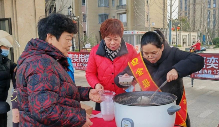 徐坝社区宜兴恒大悦龙台金碧物业开展腊八节送腊八粥活动