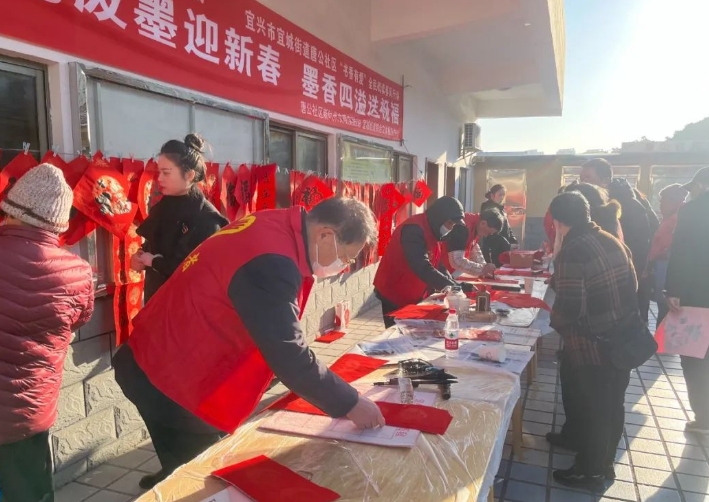在新春佳节来临之际,为弘扬中华优秀传统文化,营造浓厚的节日氛围,1月15日上午,唐公社区邀请宜兴市书法协会成员开展“挥毫泼墨迎新春 墨香四溢送祝福”写春联活动,为社区居民送上了一份充满浓浓年味与文化气息的新春祝福。