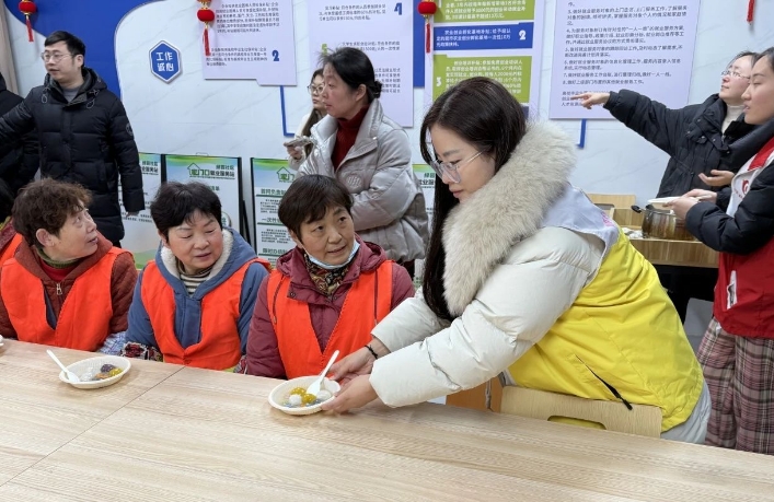 活动当天,工作人员们首先讲解了元宵节的由来和传统习俗,“猜灯谜”是一项历史悠久、趣味性强的传统民俗,志愿者精心遴选的灯谜五彩缤纷,内容广泛,既有娱乐性,又具知识性。当大家猜出答案的那一刻,脸上都洋溢着喜悦的笑容。现场充满了欢声笑语,浓浓的节日氛围感染着每一个人。除了精彩的猜字谜活动,吃汤圆自然也是必不可少的环节。社区精心准备了热气腾腾的汤圆,芝麻馅、花生馅……各种口味一应俱全。大家围坐在一起,一边品尝着软糯香甜的汤圆,一边分享着生活中的点滴趣事。汤圆的香甜在口中散开,温暖了每个人的心,也让邻里之间的关系更加亲近。现场一片欢声笑语,洋溢着浓浓的节日氛围。社区工作人员们精心包装好象征团圆的汤圆,带着满满的祝福,走访慰问一线工作人员们,当一碗碗热气腾腾的汤圆呈现在眼前时,他们的脸上露出了惊喜与感动的笑容。